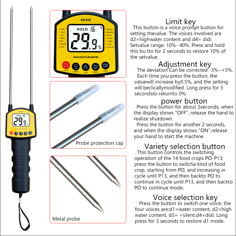 Medidor de humedad de heno portátil Medidor de humedad de grano LCD digital para trigo Maíz Arroz Cacahuete Soja
