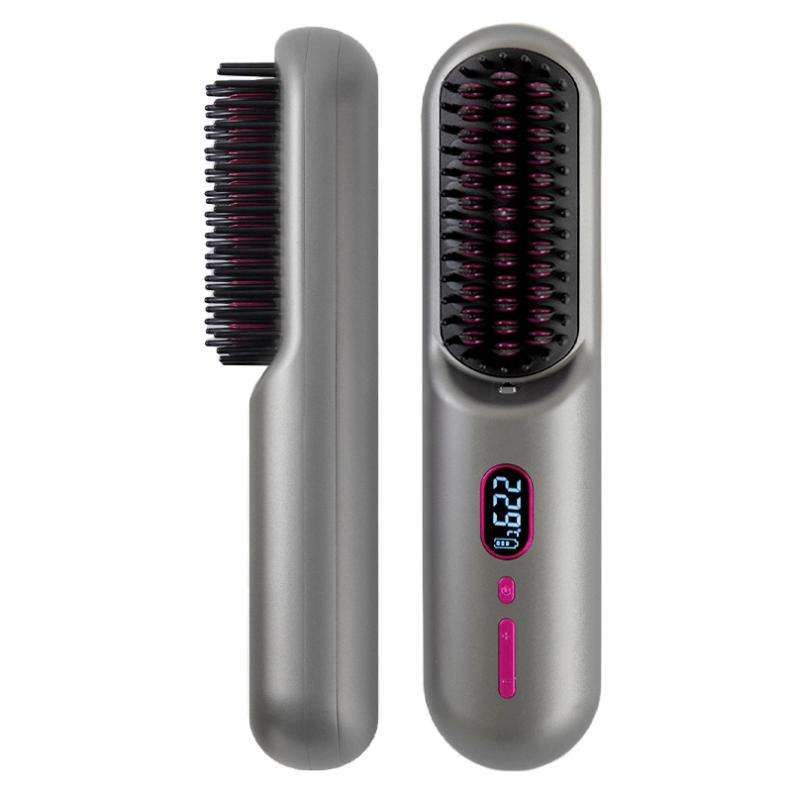 Mini Peine Alisador Iónico Portátil con Calentamiento Rápido, Cepillo Alisador Inalámbrico para Viajes