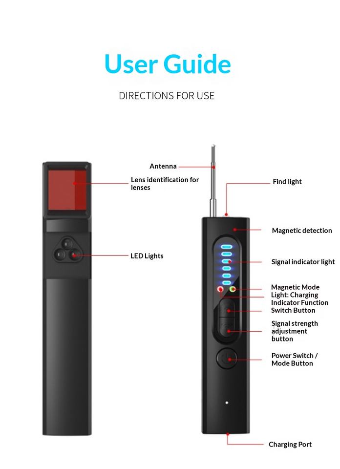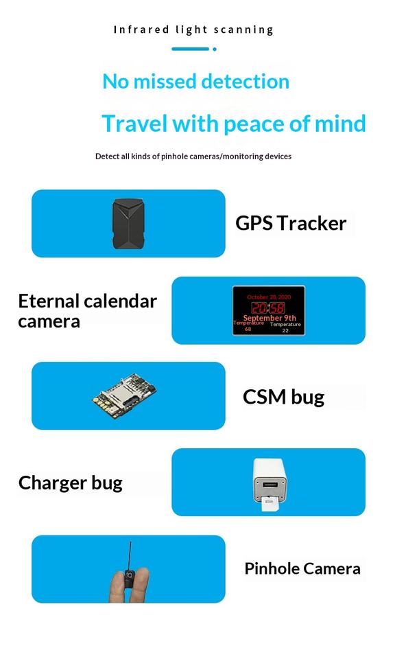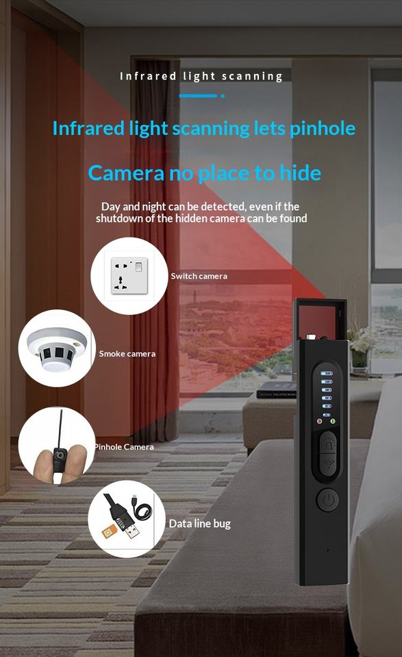 Detector de Cámaras Ocultas Portátil, Detector de Cámaras Espía Mejorado para Viajes, Buscador de Dispositivos Ocultos, Escáner de Señales Inalámbricas de 10 m