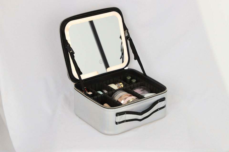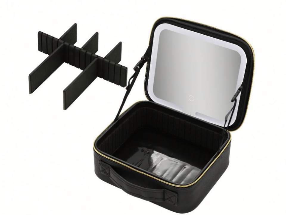 Estuche de Viaje Portátil de Gran Capacidad y Diseño Elegante con Espejo con Luz LED, Bolsa de Maquillaje Profesional y Moderna