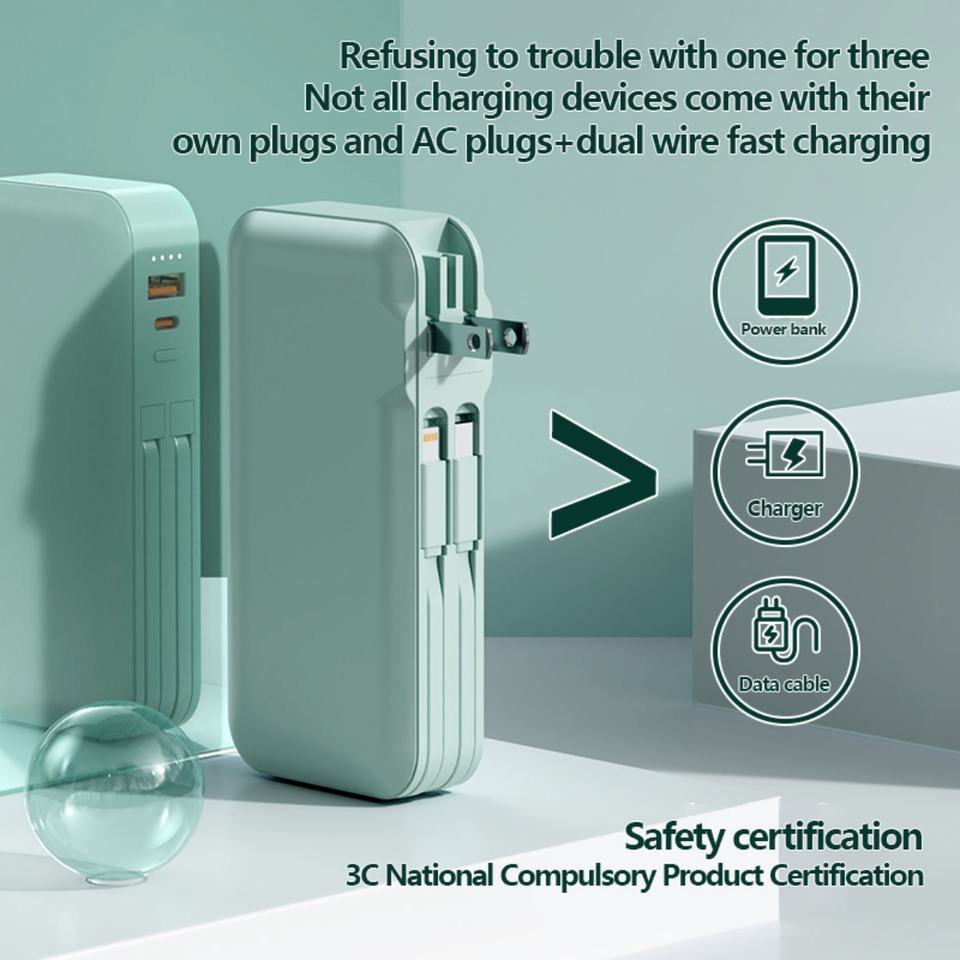 Banco de Energía Portátil de Alta Capacidad 10000mAh, Carga Rápida, Adaptador de Pared con Doble USB Tipo-C, Entrada Mini USB, Enchufes US AU EU UK