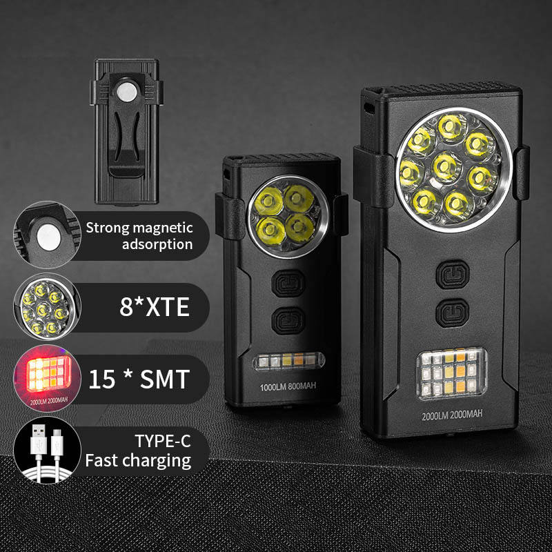 Imán fuerte portátil de alta potencia recargable rojo azul advertencia Clip trasero Mini linterna LED para trabajo al aire libre Herramienta de bolsillo EDC