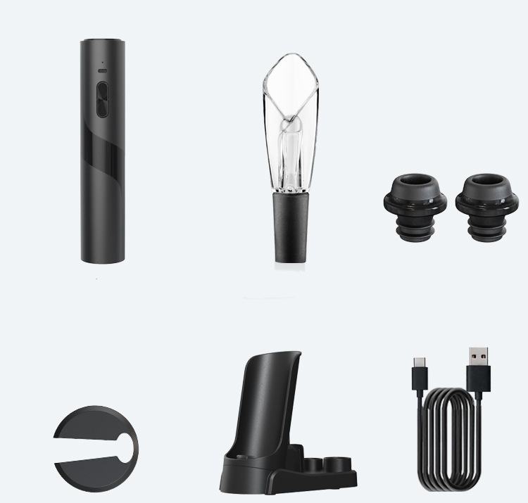 Sacacorchos Eléctrico Recargable Portátil de Alta Calidad, Set de Regalo de Vino 7 en 1 con Bomba de Vacío Eléctrica y Estación de Carga