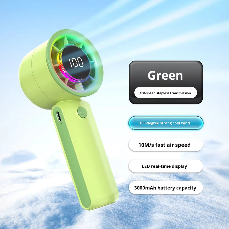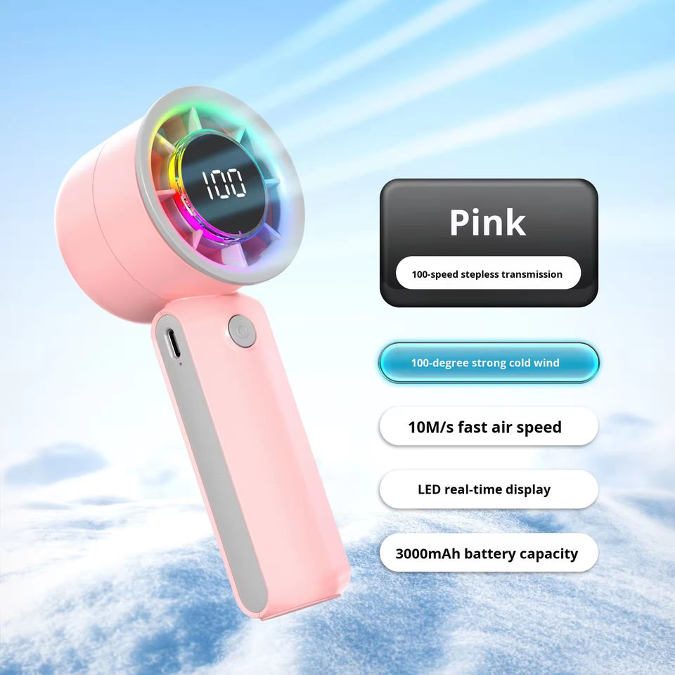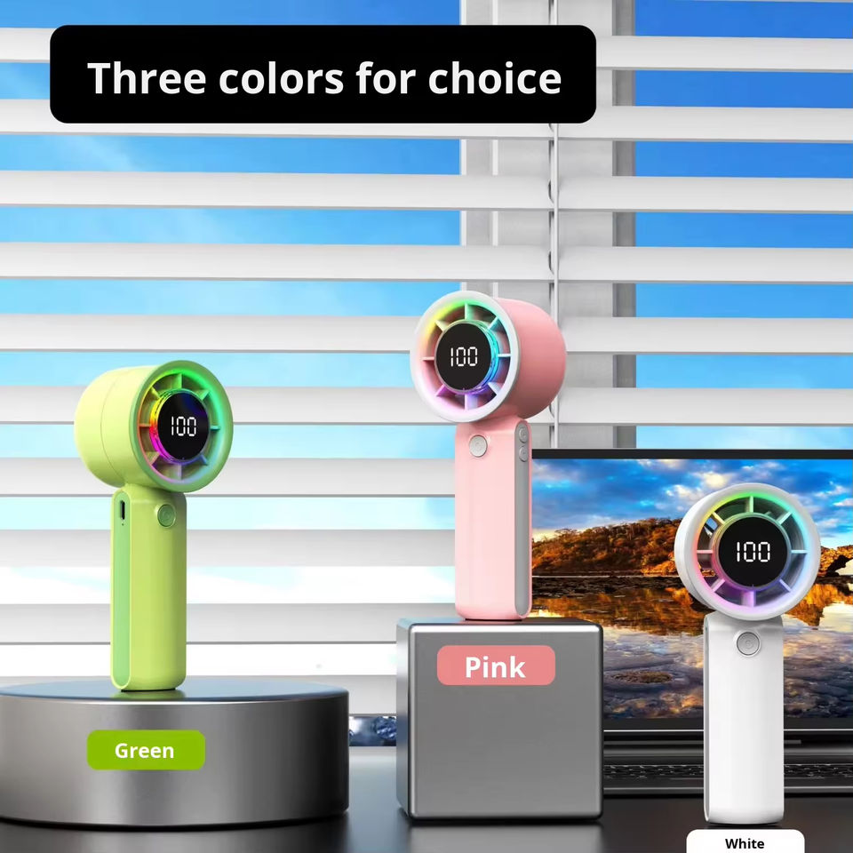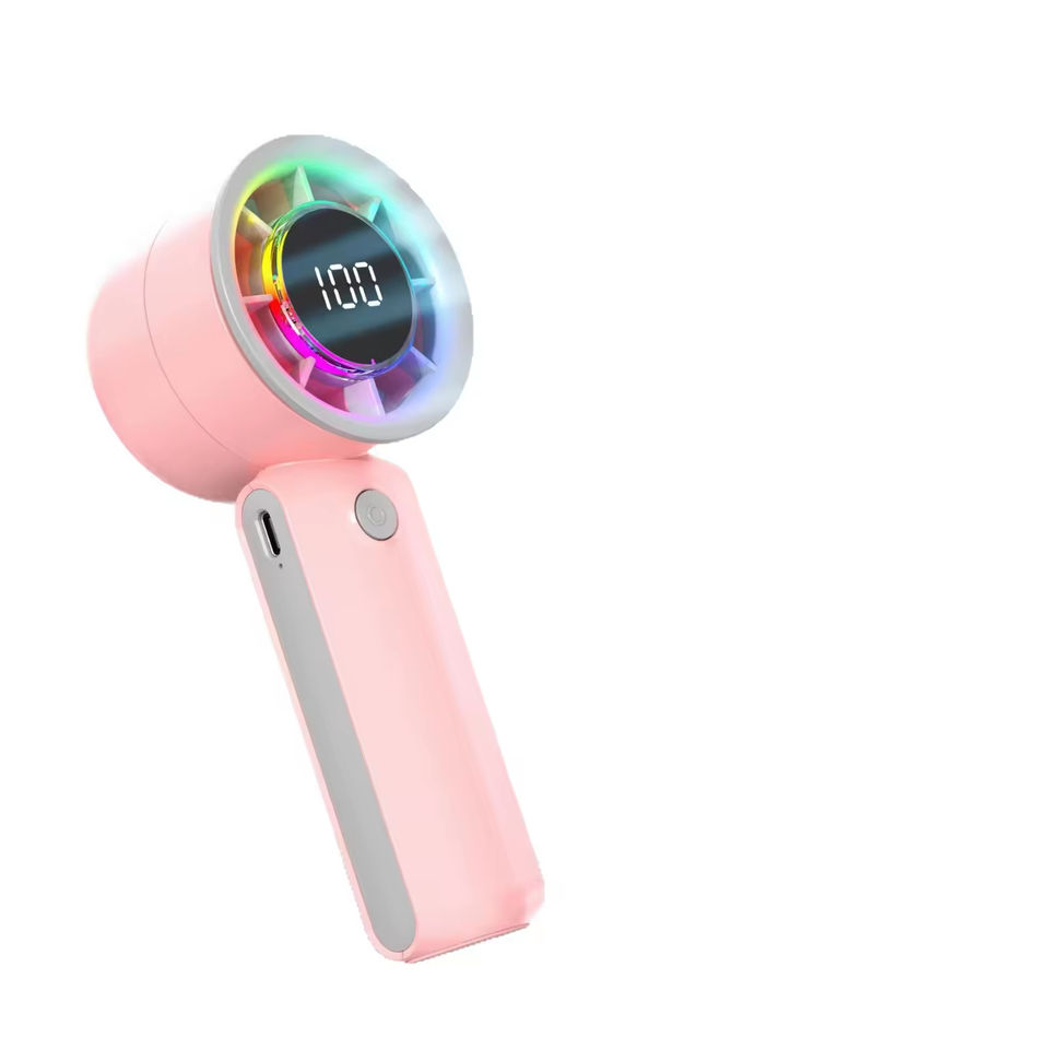 Ventilador portátil de alta velocidad con luz colorida, enfriador de bolsillo personal, control de viento continuo para acampar al aire libre, escritorio de oficina