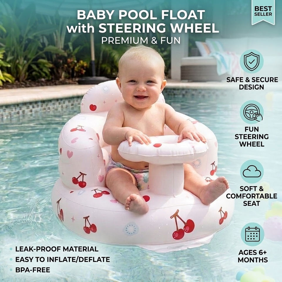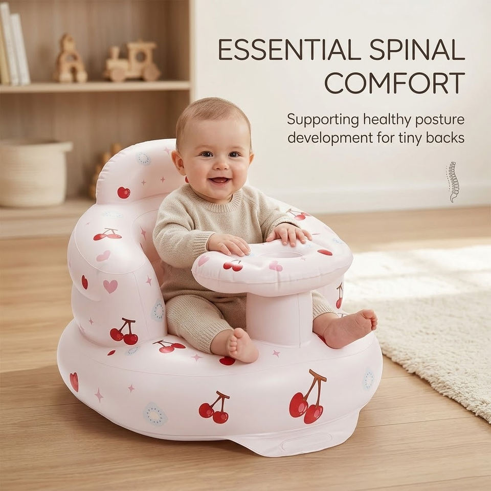 Sofá Inflable Portátil para Bebés con Bomba, Asiento de Piso para Niños de 3 a 36 Meses, Silla de Actividades para Niños y Niñas, Diseño de Cereza