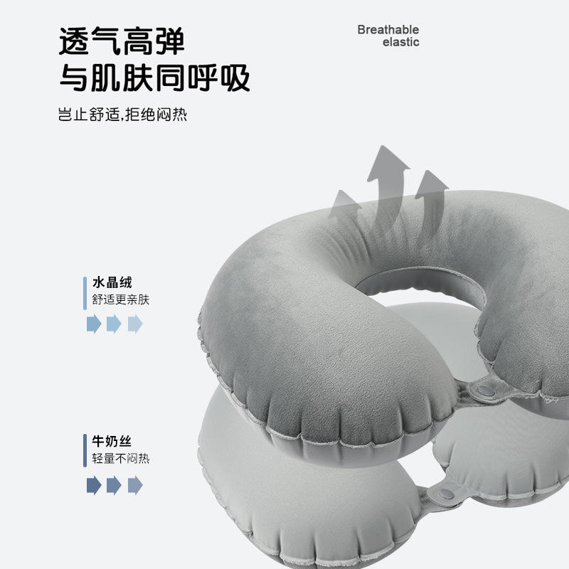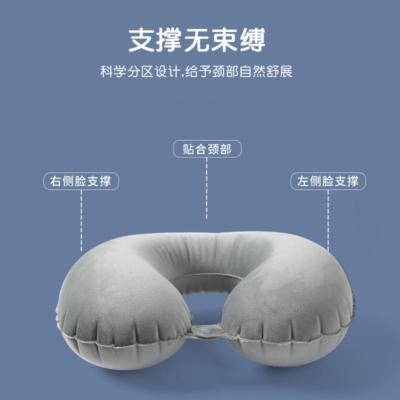 Almohada inflable portátil en forma de U para el cuello, para viajes y uso en la oficina, material de poliéster de color sólido, diseño ligero