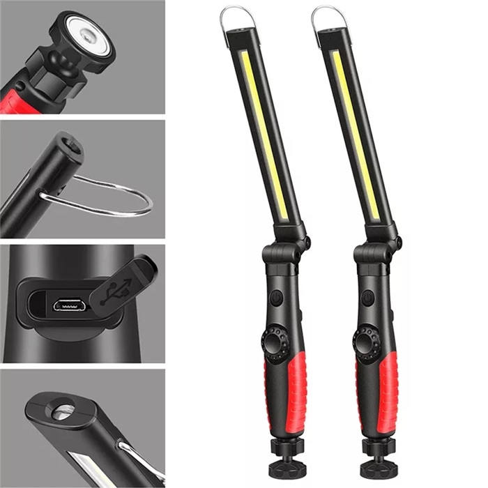 Luz DE TRABAJO COB magnética de Inpesction portátil, lámpara de trabajo de mantenimiento recargable LED automática plegable con Base para reparación de automóviles