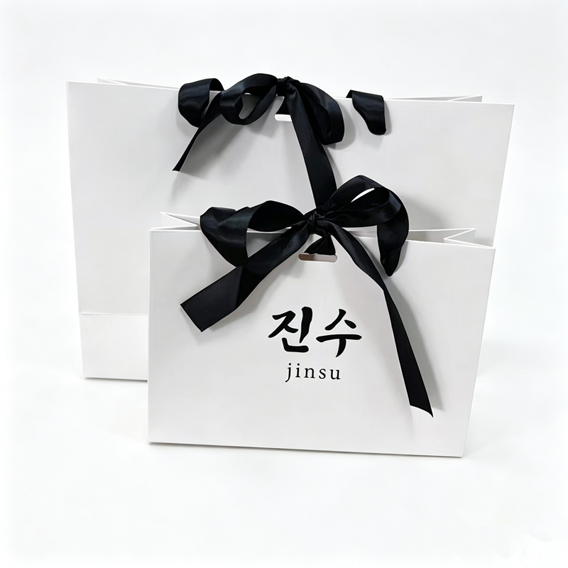 Bolsas de Cartón para Joyería Portátiles con Asa de Listón, Personalizadas, de Lujo, Ecológicas, Reutilizables, con Logotipo Estampado en Lámina Digital