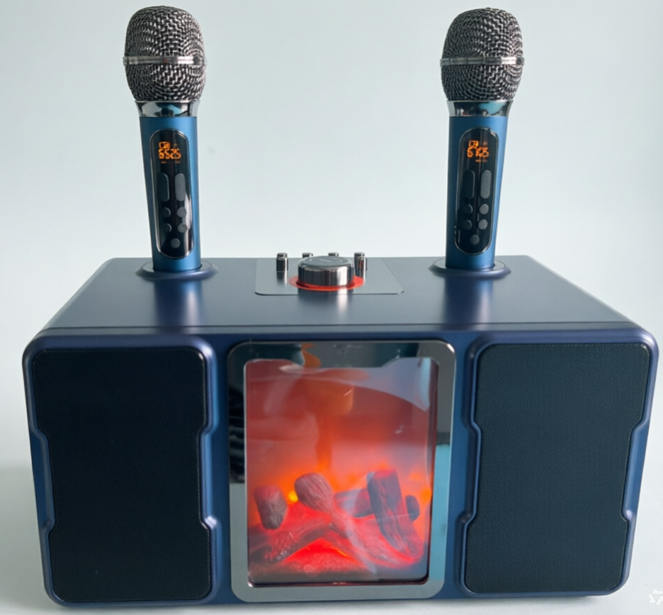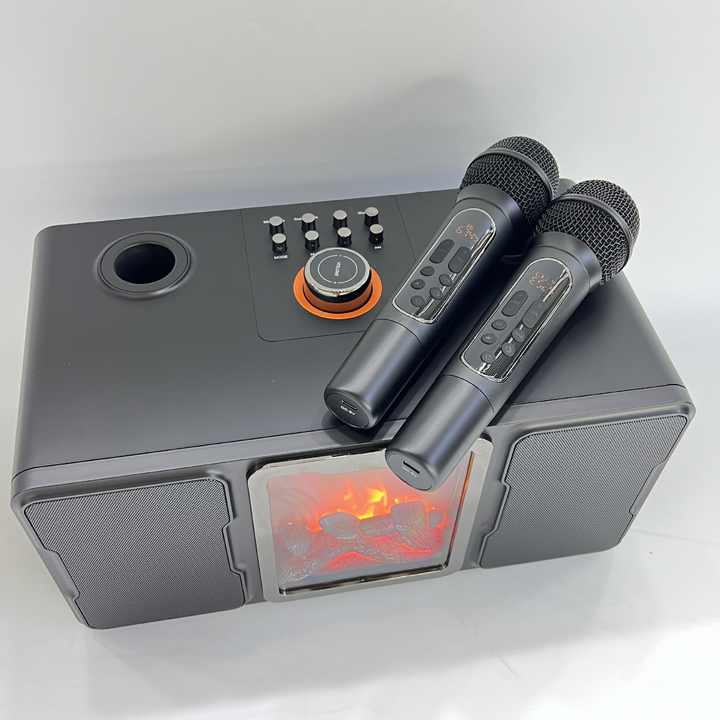 Máquina de Karaoke Portátil con Micrófonos Inalámbricos BT 5.2, Altavoz KTV para el Hogar con Luz de Llama, Sistema de Sonido HiFi para Fiestas Familiares