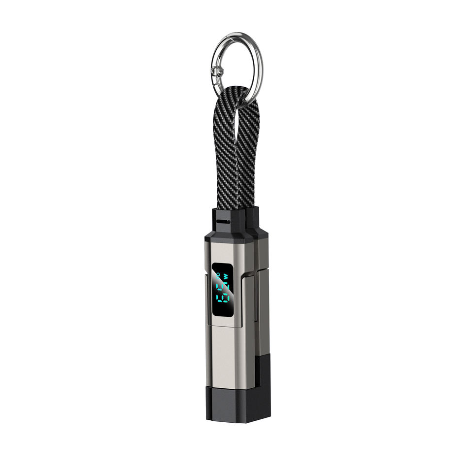Cable de Datos Portátil con Llavero y Pantalla Digital Inteligente, Compatible con Carga Súper Rápida, Cuatro en Uno