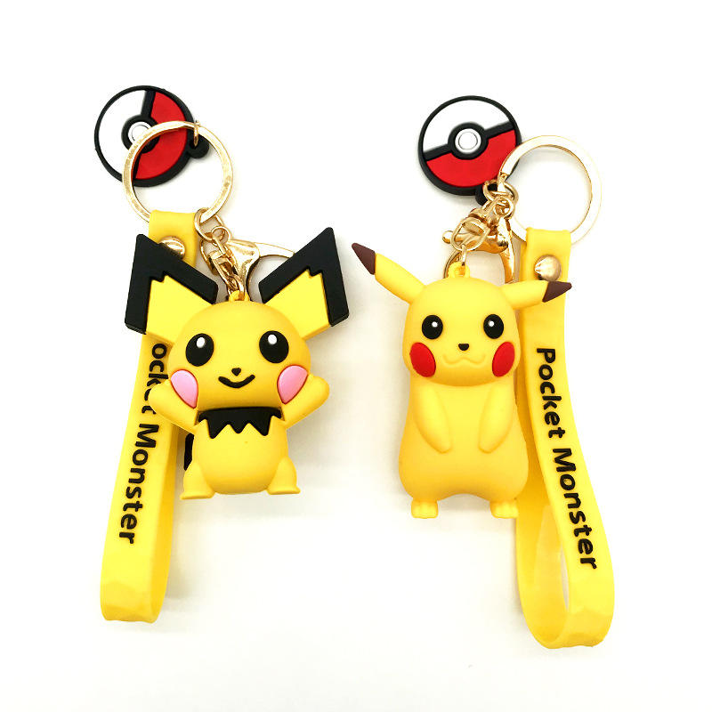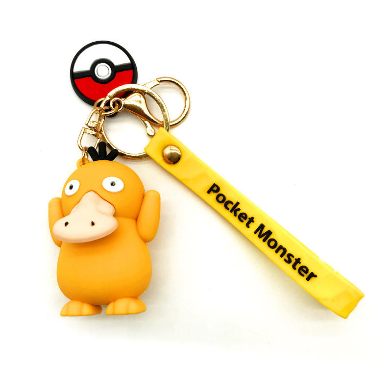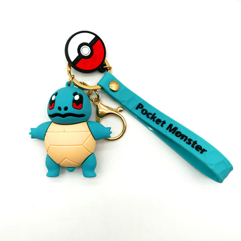 Llaveros de goma de dibujos animados 3D portátiles duraderos ecológicos al por mayor lindo Pika Squirtle Psyduck bolso llave de coche decoración llave