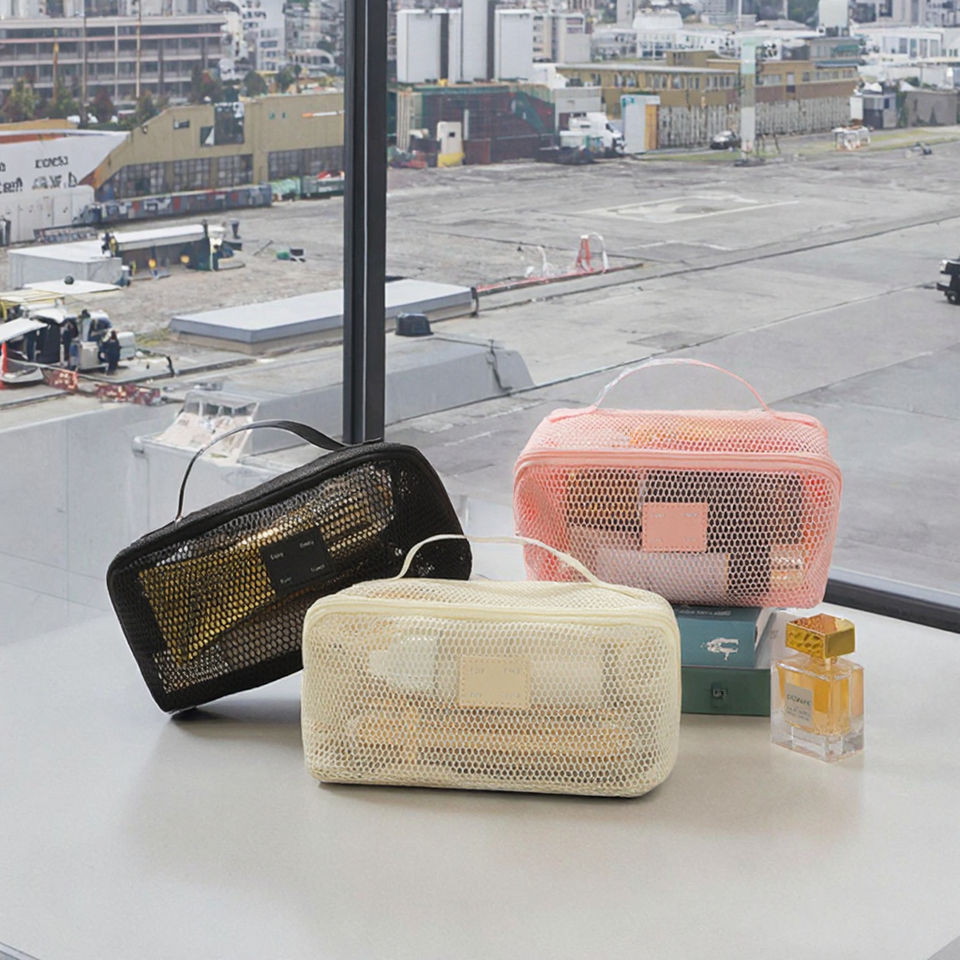 Organizador de Cosméticos Transparente de Gran Capacidad, Portátil, con Malla Rosa, para Bolsa de Aseo, Multifuncional, con Cierre, para Mujer