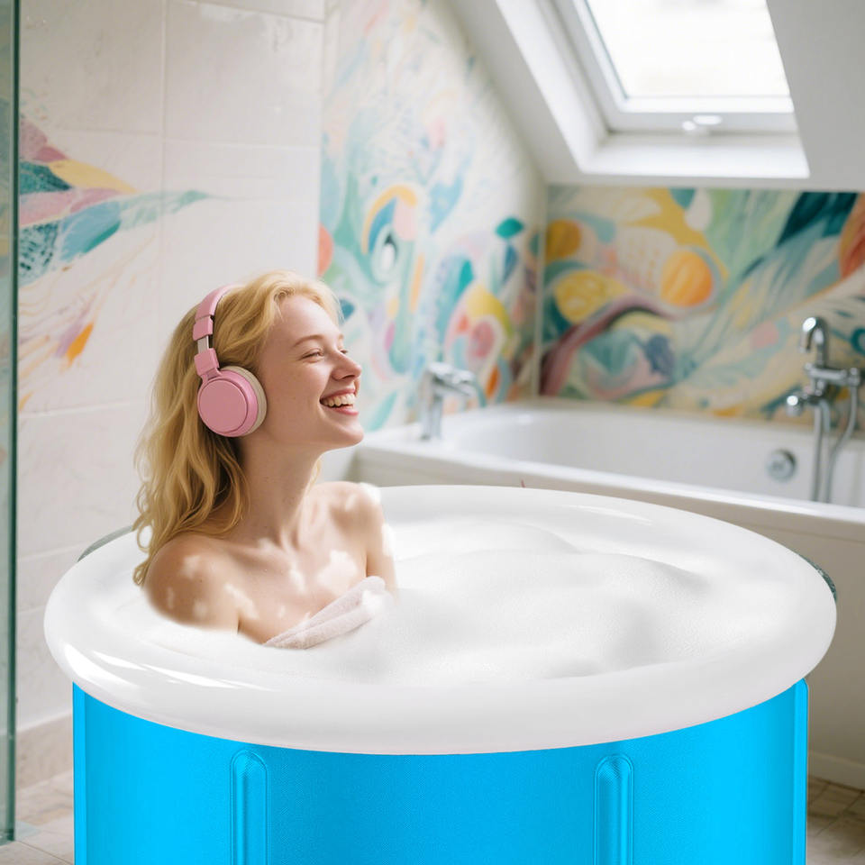 Bañera de Hielo Plegable Portátil de PVC Grande con Ducha y Limpiador para Terapia de Recuperación por Inmersión en Frío para Atletas