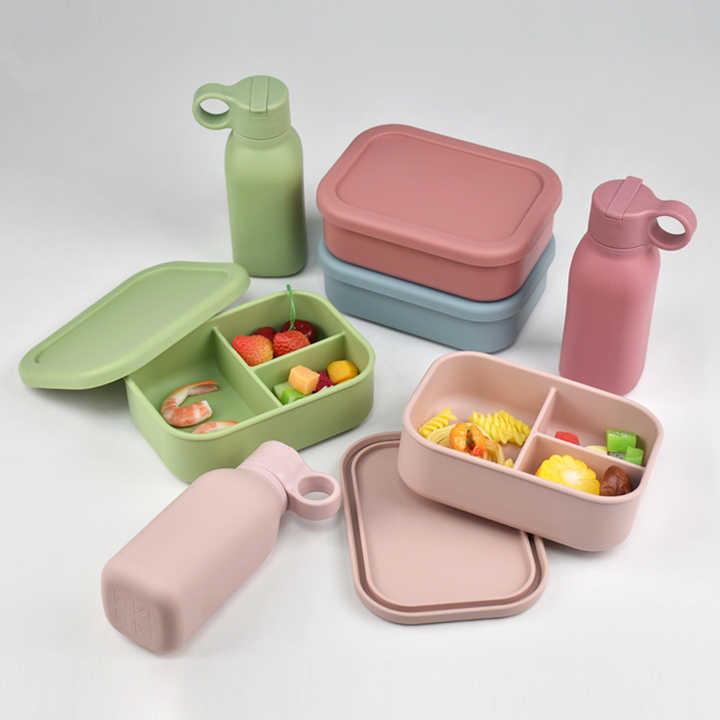 Fiambrera Bento portátil de silicona a prueba de fugas, botella de agua y contenedor de comida para llevar cómodamente su comida