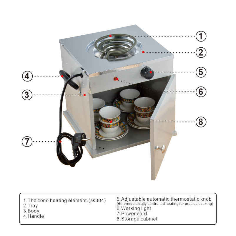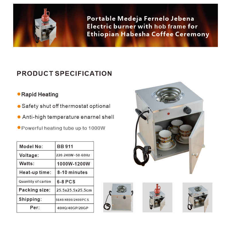 Estufa eléctrica portátil Medeja Fernelo Jebena de un solo quemador con gabinete de almacenamiento para la ceremonia del café Habesha etíope