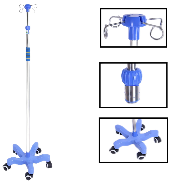 Soporte médico portátil Estante Altura ajustable Inoxidable Iv Infusión Poste con base de metal sólido para clínica de hospital