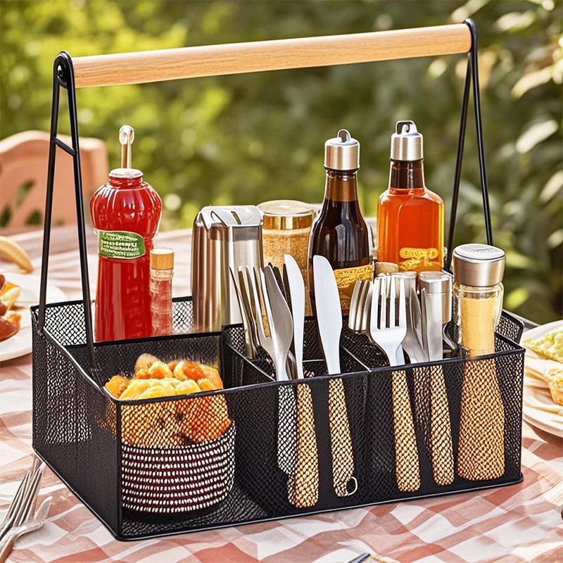 Cesta de almacenamiento de malla portátil para pícnic al aire libre, organizador de utensilios de cocina, tipo rectangular ecológico