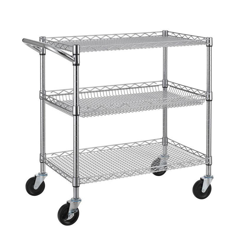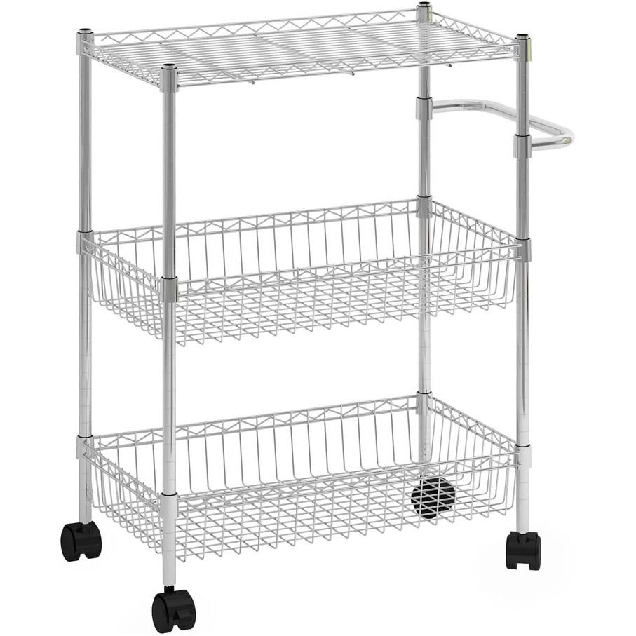 Carrito de Almacenamiento de Cocina Metálico Portátil con Diseño de Cesta Ventilada para Guardar Cebollas, Patatas y Verduras