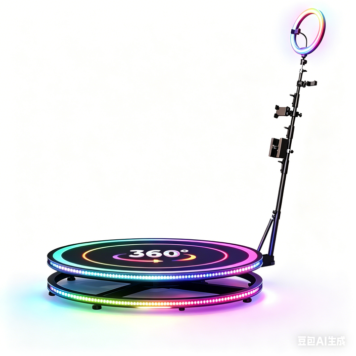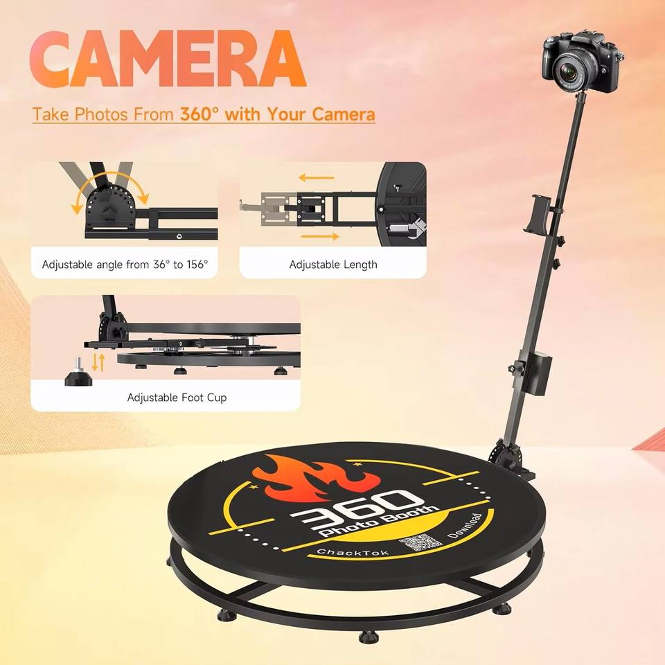 Plataforma Redonda Portátil de Metal para Stand de Exhibición 360 ° Cabina de Fotos Giratoria Automática para Bodas, Fiestas, Cumpleaños y Eventos