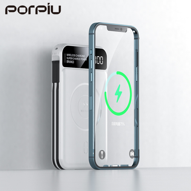 Mini banco de energía portátil de 10000mAh USB para cargador inalámbrico magnético con pantalla Venta caliente de carga al aire libre para Apple