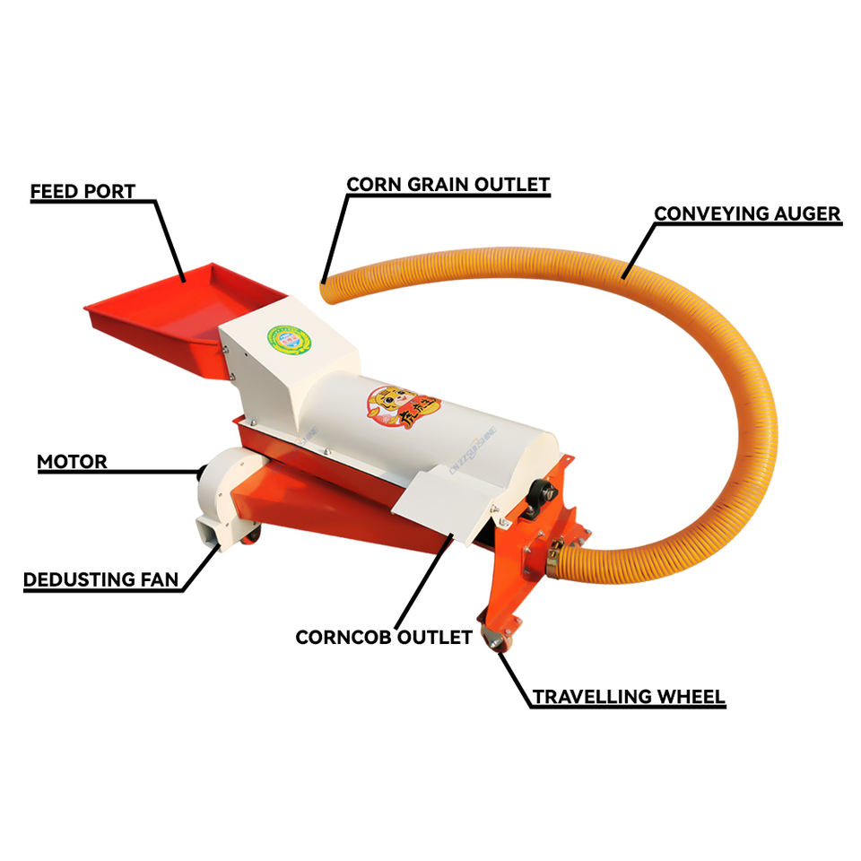 Desgranadora de Maíz Portátil Mini con Tubería de Transporte, Estructura Compacta, Equipo de Trillado de Maíz, Bajo Consumo de Energía y Conveniente
