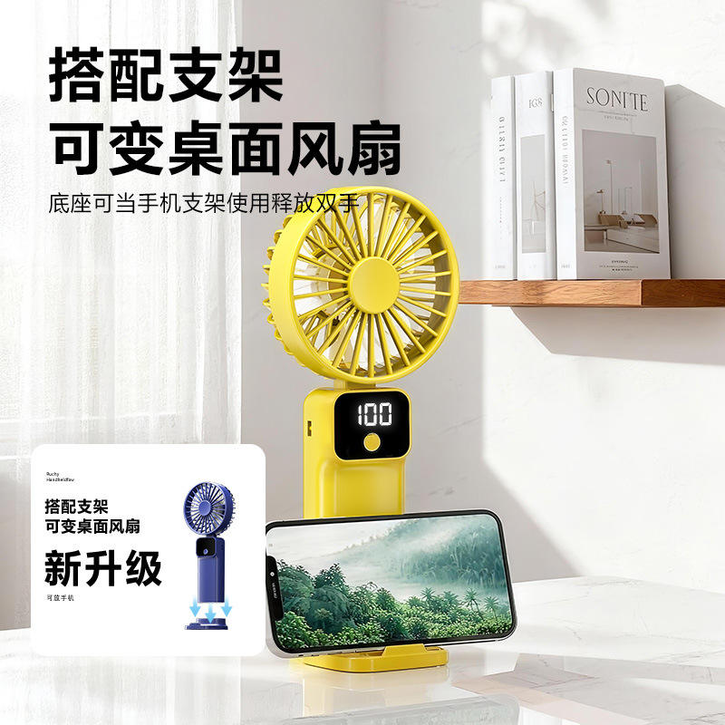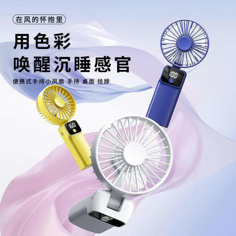 Mini Ventilador Portátil D13 Plegable, Recargable por USB, con Pantalla Digital, 3-6 Horas de Duración de la Batería, Ventilador de Escritorio, de Mano y Portátil