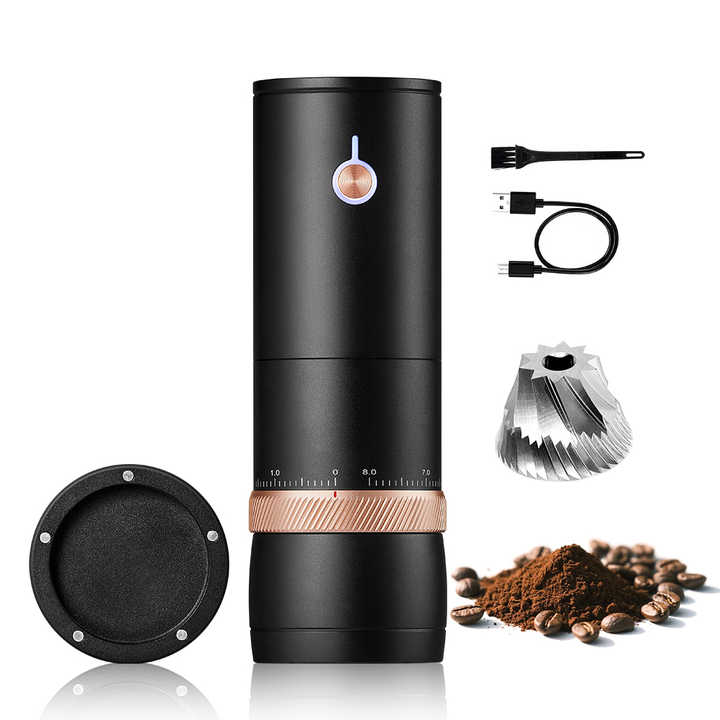 Molinillo de Café Eléctrico Automático Portátil Mini Recargable Inalámbrico con Núcleo de Acero Inoxidable y 10 Niveles de Ajuste