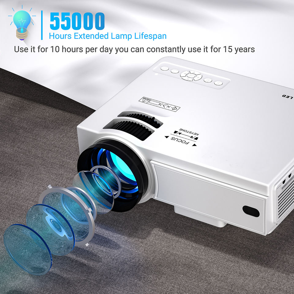 Mini Proyector Portátil, Cine en Casa, Proyector LED 3D HD 1080P, Proyector Auking con Entrada AV y USB