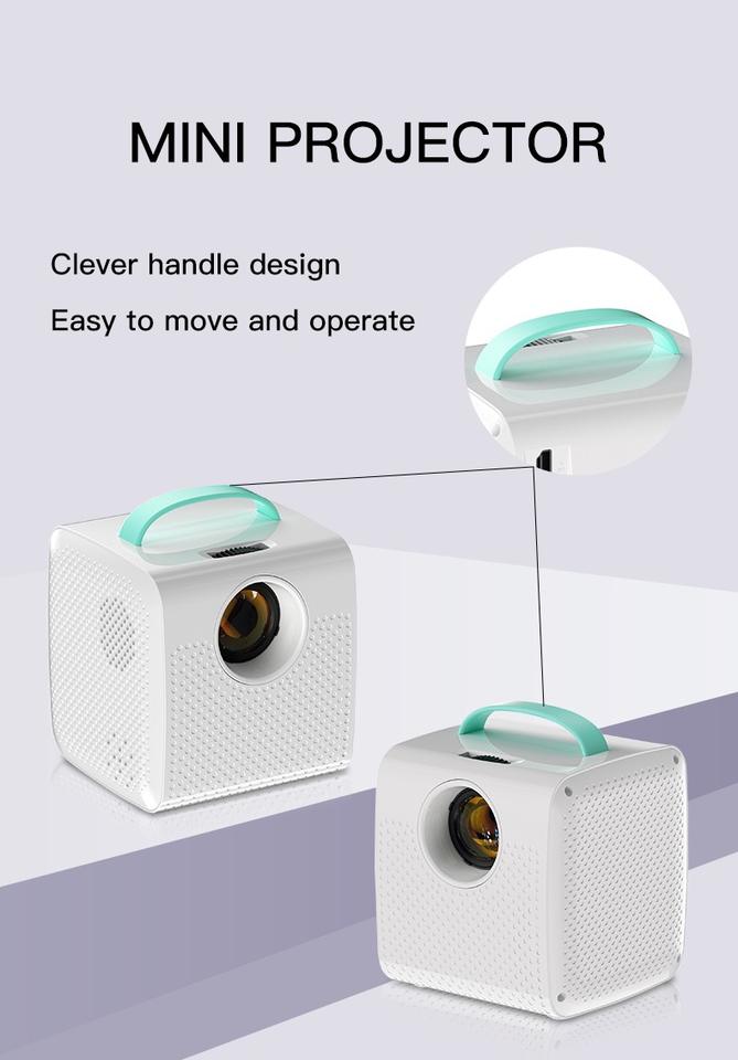 Mini Proyector Portátil con Asa, Proyector de Video HD para Cine en Casa y Noches de Cine al Aire Libre