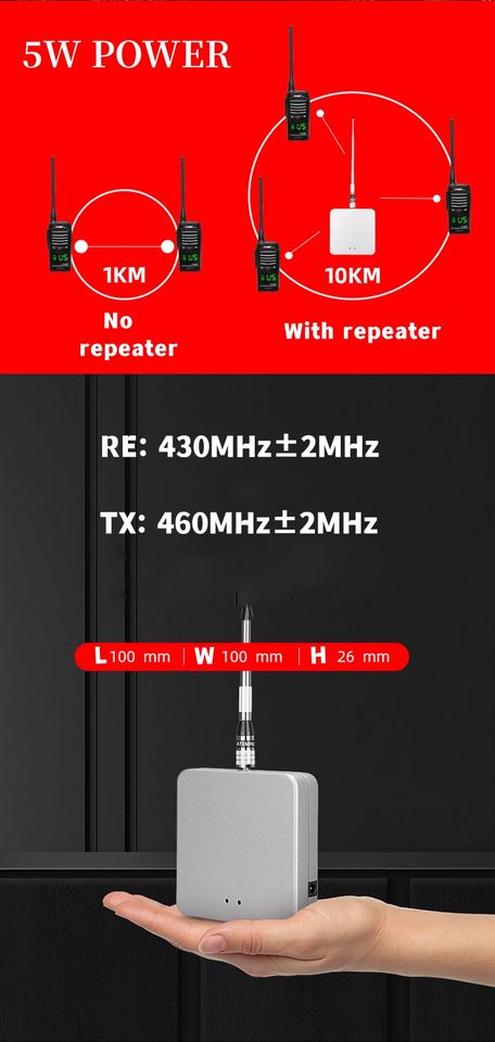 Radio Bidireccional Portátil Mini, Repetidor UHF de Estación Base de Largo Alcance (8 KM) para Walkie Talkie