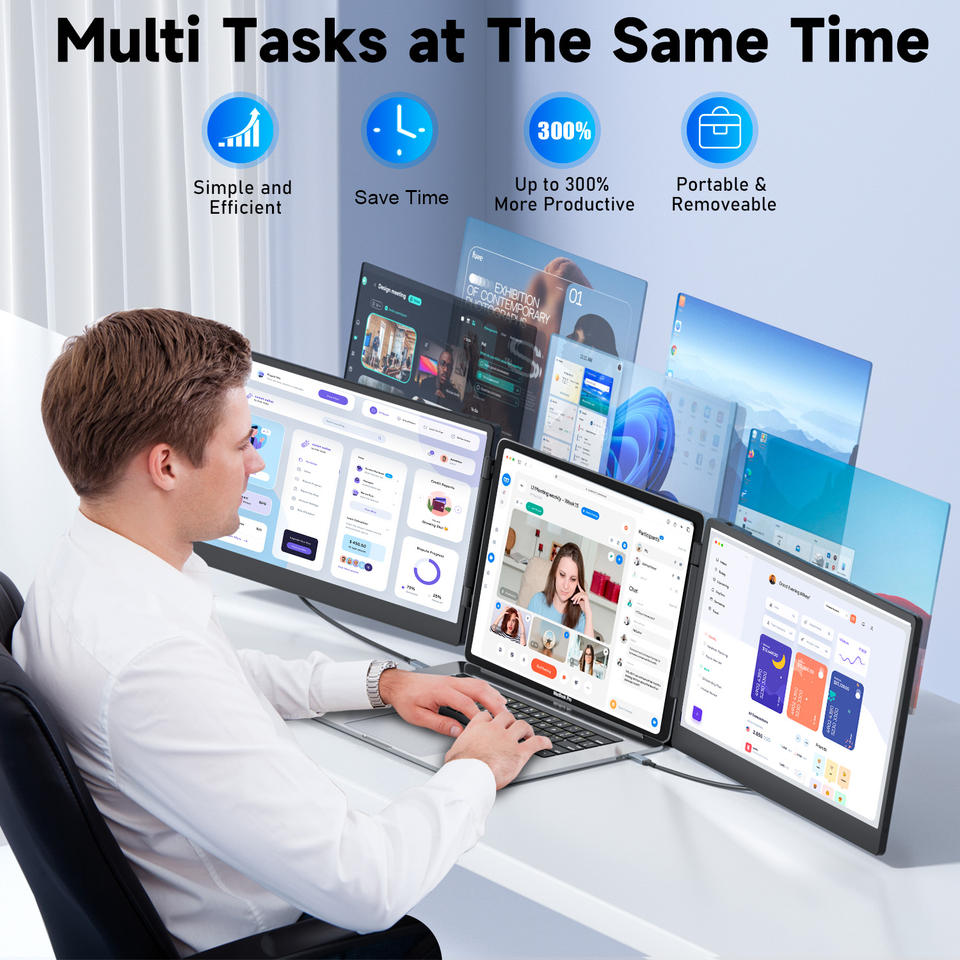 Monitores Portátiles S3, Monitor Triple Portátil USB, Monitor de Pantalla Triple IPS de 14 Pulgadas, Pantalla Extendida para Computadora Portátil