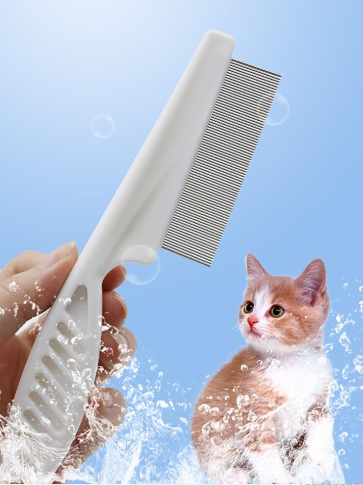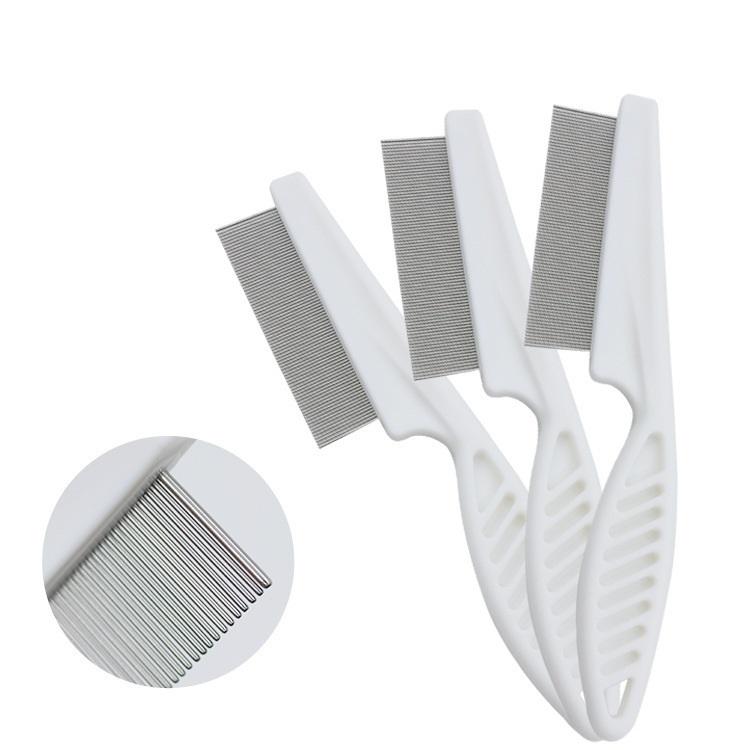 Herramienta portátil de aseo para múltiples mascotas, acero inoxidable, dientes densos, pulgas, piojos, liendres, peine antipulgas para limpieza de perros con mango de plástico