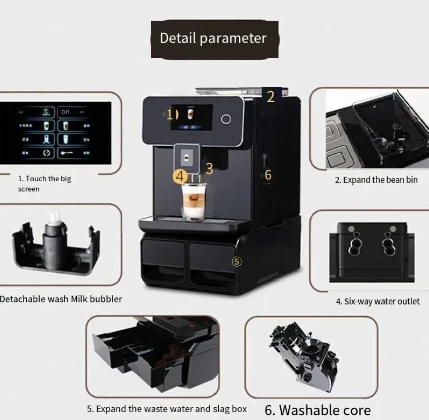 Cafetera Automática Portátil Multifuncional para el Hogar y la Oficina, Café Recién Molido Inteligente, Cafetera con Espuma de Leche de un Solo Toque