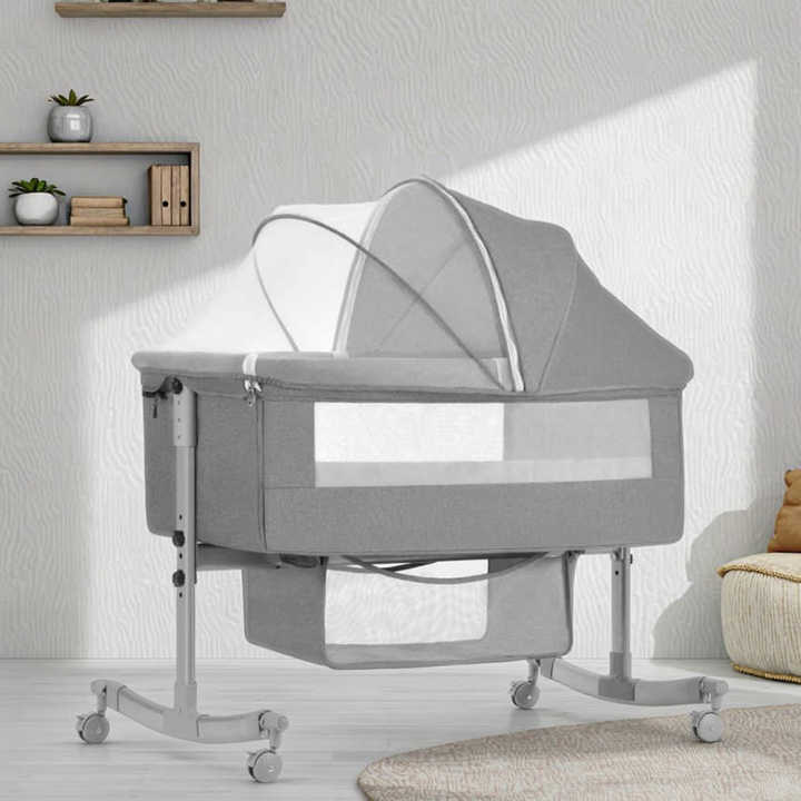 Cuna de bebé multifuncional portátil Fácil montaje Corralitos de metal plegables Diseño moderno para dormitorio Comedor Hospital de plástico