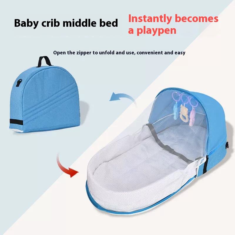 Cama plegable portátil multifuncional para bebé, aislamiento antimosquitos desmontable para viaje en la cama, mochila incluida para niños