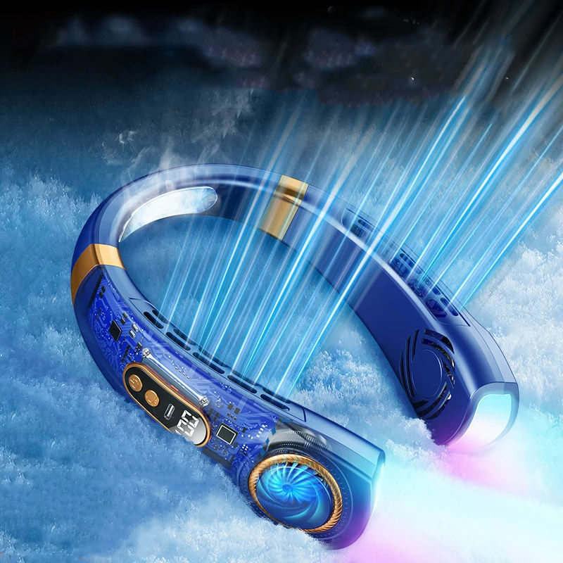 Ventilador de Cuello Portátil USB, Silencioso, con Pantalla LED Digital, Mini Ventilador Eléctrico sin Aspas, Luces de Ambiente Coloridas