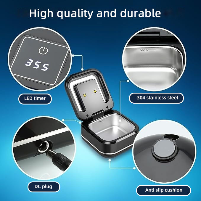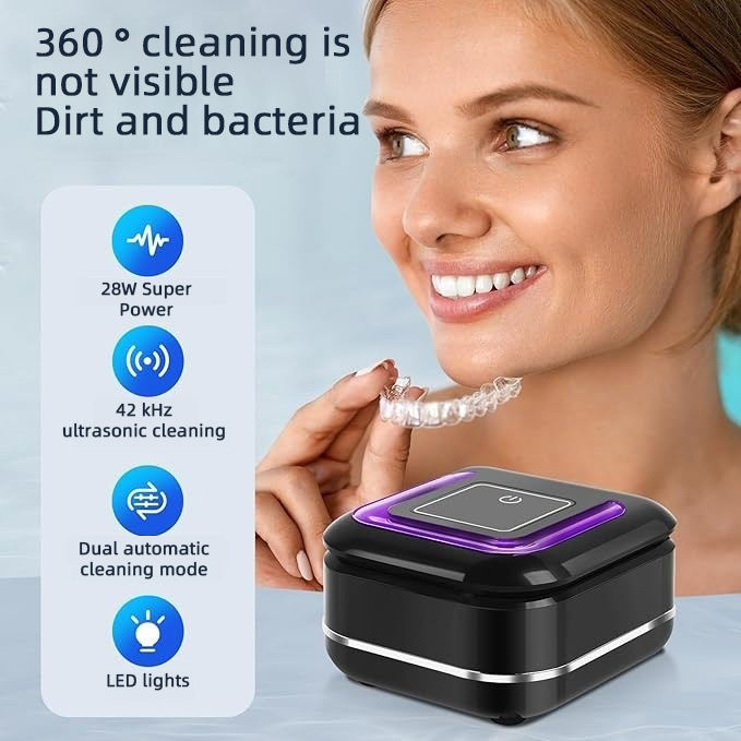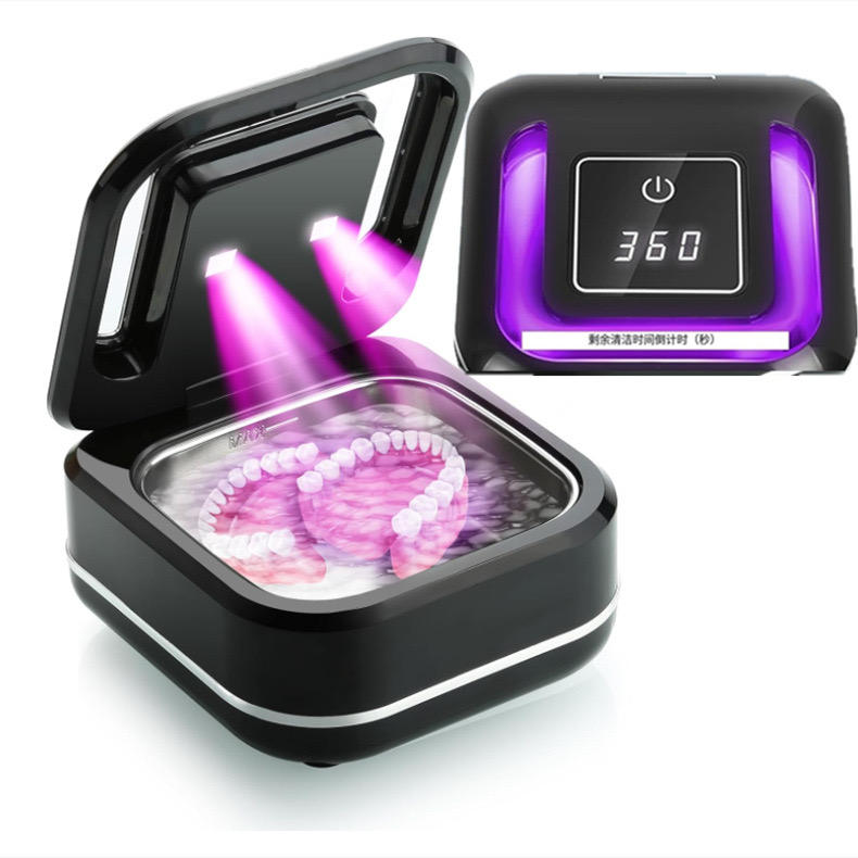 Máquina de limpieza de alineador de ortodoncia portátil, caja de retención de dentaduras dentales para el hogar, limpiador ultrasónico UVC para joyería Glasser