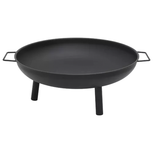 Cuenco portátil para fogatas de acero negro para exteriores, acabado recubierto de polvo con asas para suministros de jardín, accesorios para parrilla de barbacoa