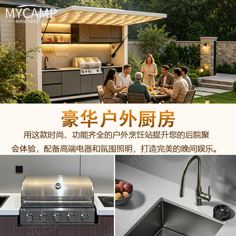 Cocina Portátil para Exteriores con Parrilla de Gas, Material Combinado de Una Pieza, Estufa para Acampar para Todas las Estaciones
