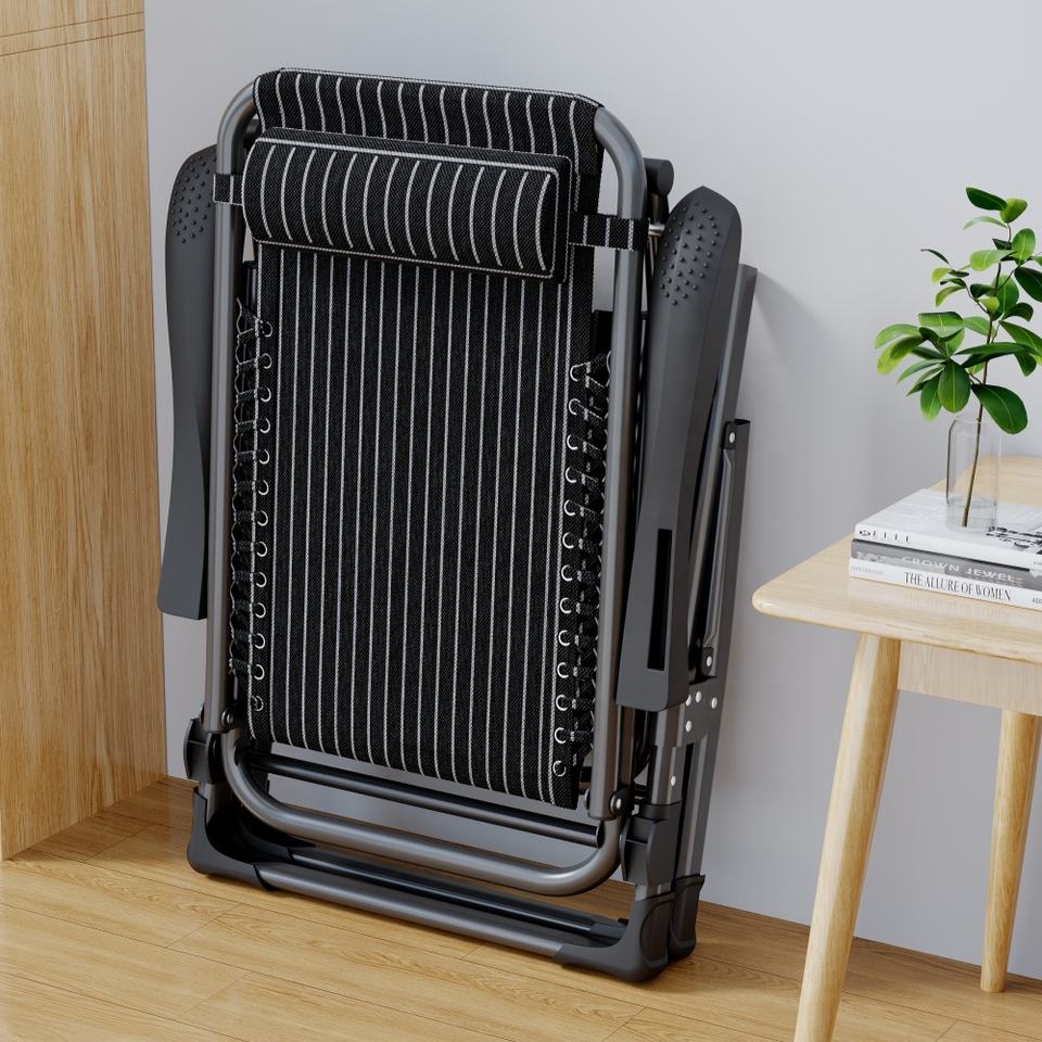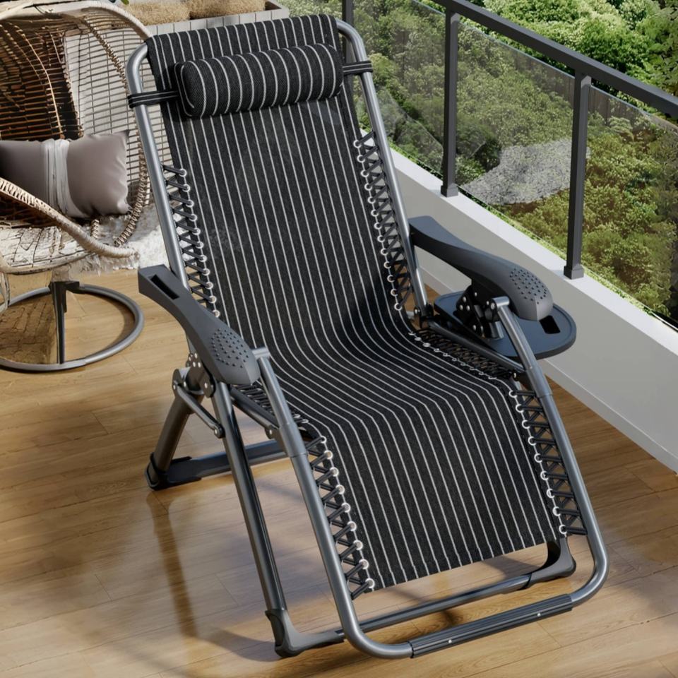 Tumbona Reclinable Plegable Portátil de Lujo con Marco Metálico y Diseño de Rayas, Ajustable en Múltiples Posiciones, para Exteriores, Gravedad Cero