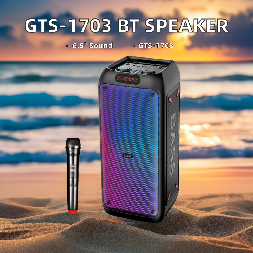 Altavoz inalámbrico portátil para exteriores RGB LED Dual 6,5 pulgadas micrófono con cable Radio FM USB TF tarjeta MP3 música fiestas