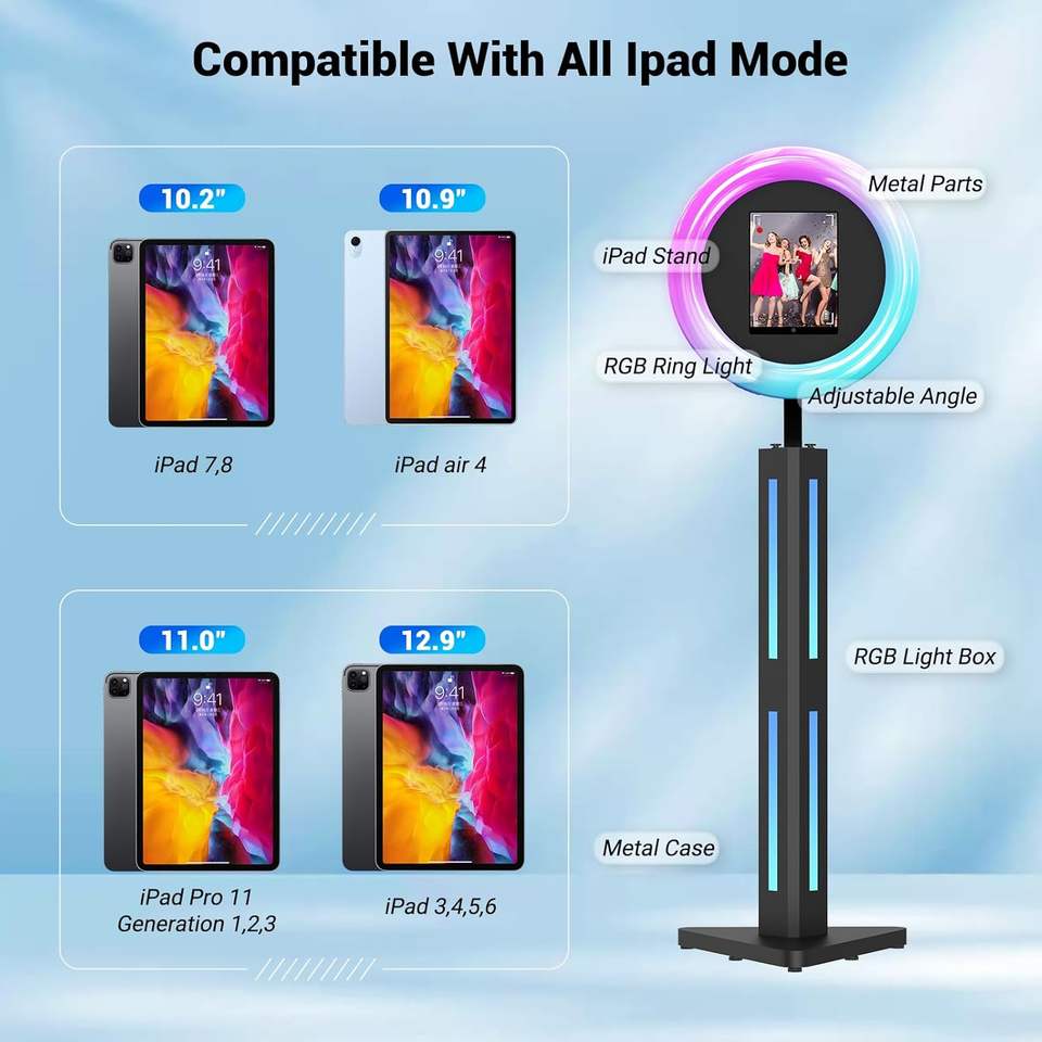 Soporte Portátil para Cabina de Fotos con Estuche de Transporte, Compatible con iPad de 12.9, 11, 10.9 y 10.2 Pulgadas, Cabina de Fotos para Selfies