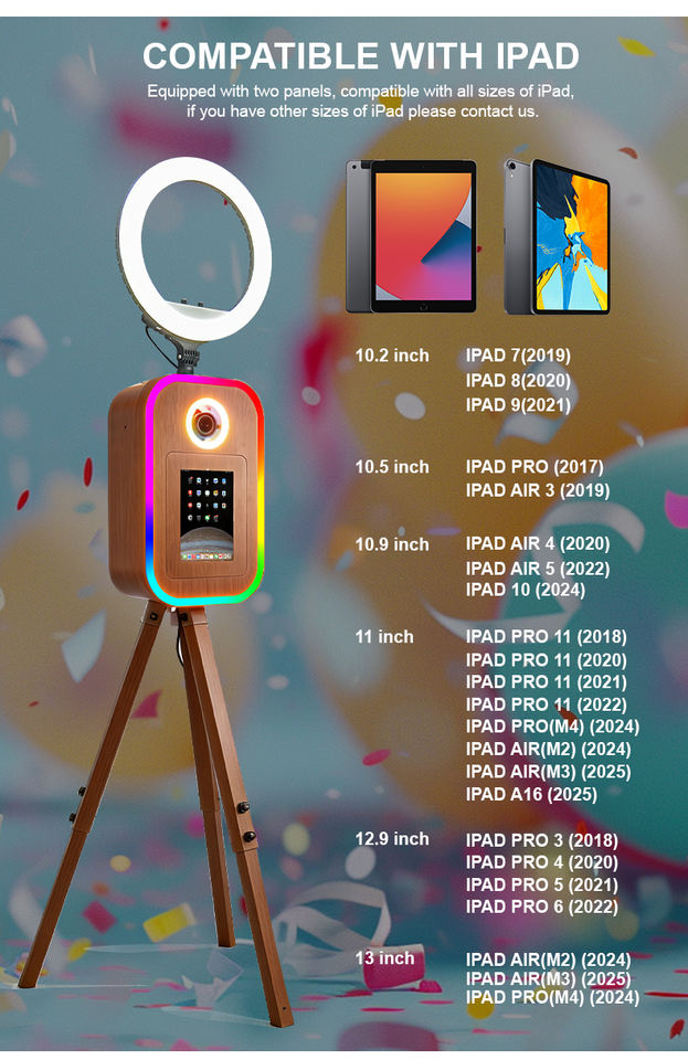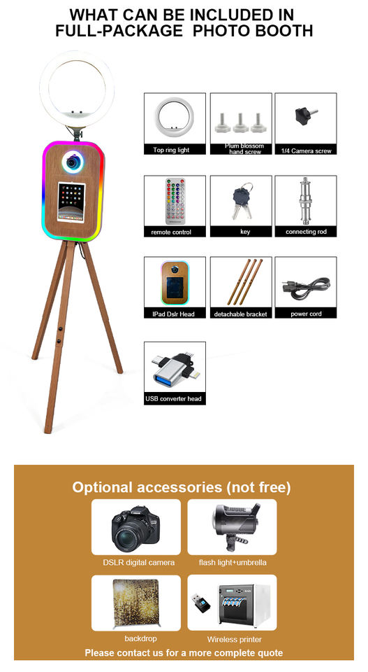 Cabina de Fotos Portátil con Soporte Triangular con Aspecto de Madera, Luz RGB Cuadrada, Cabina de Fotos Retro para IPAD y DSLR