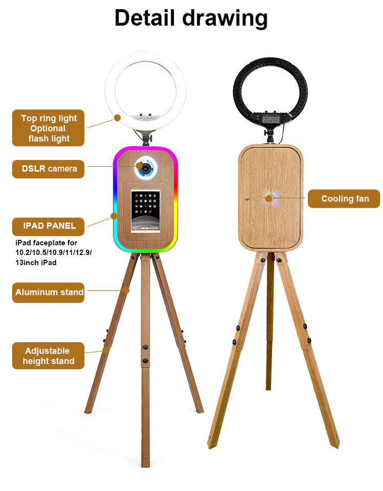 Soporte triangular con vetas de madera para iPad, DSLR, cabina de fotos retro