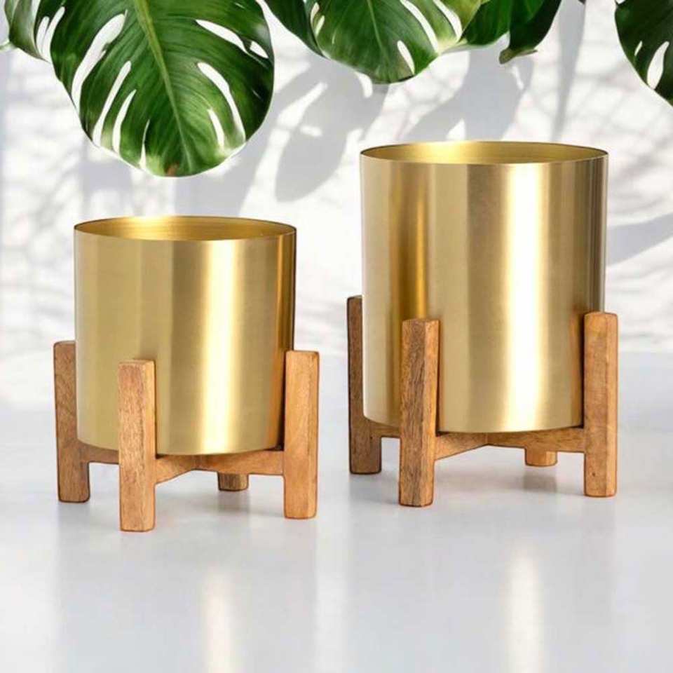 Maceta portátil Tallada a mano Diseñador Maceta de metal y cubo de flores y maceta para balcón y decoración de jardín