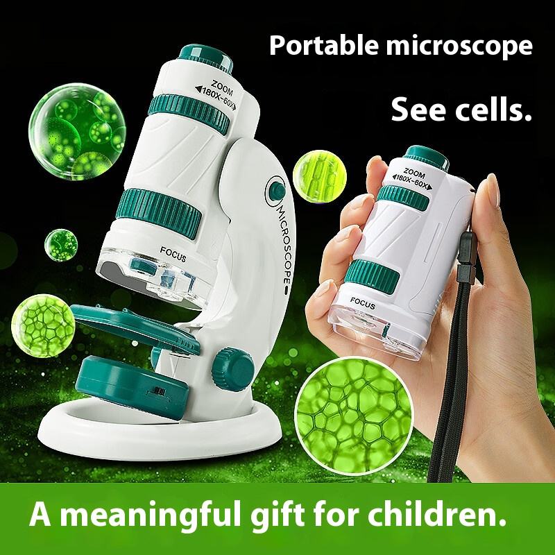 Microscopio educativo de juguete de plástico portátil para niños de escuela primaria y secundaria Pantalla de bacterias de especímenes de insectos