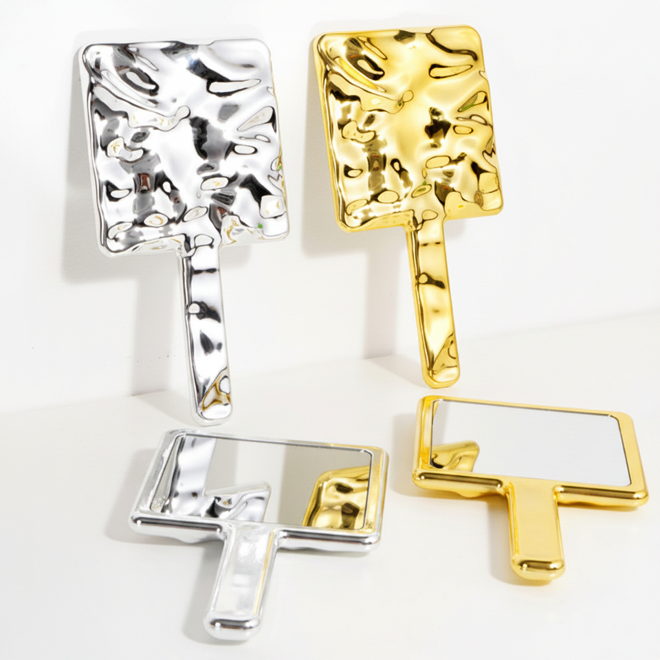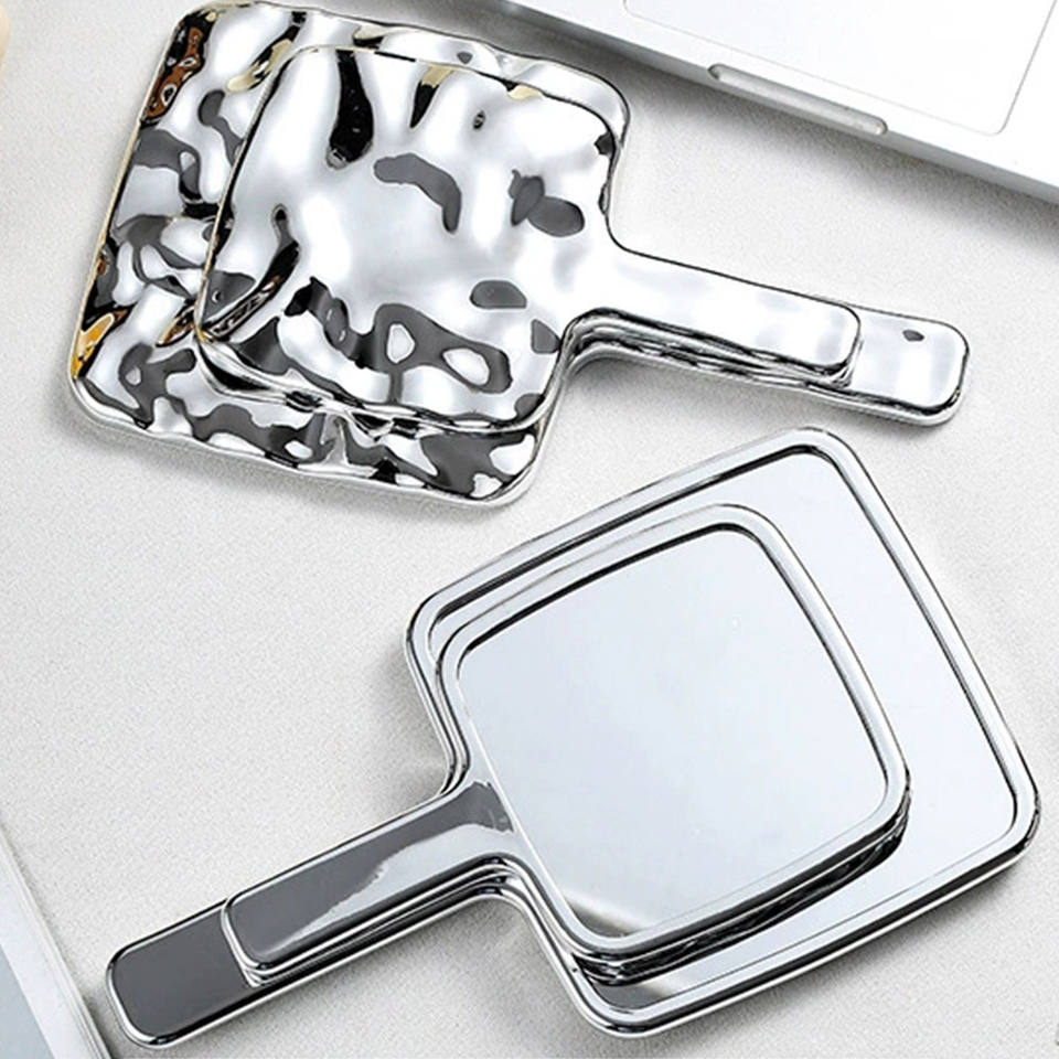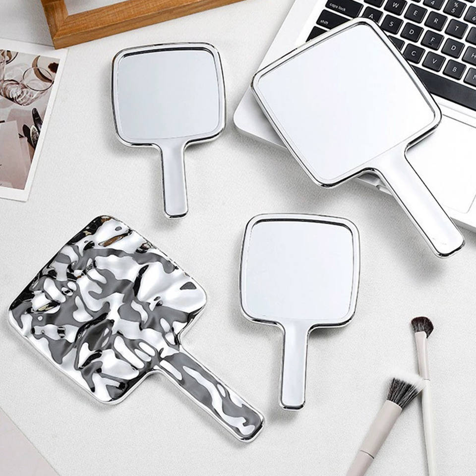 Espejo de Maquillaje Portátil de Plástico, Espejo de Mano Cuadrado de Alta Definición con Asa para Salón