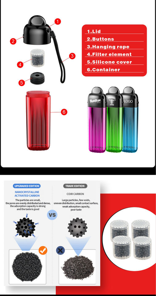 Estuche Portátil de Plástico a Prueba de Olores para Almacenamiento de Cigarrillos Pre-enrollados, Práctico Contenedor Protector para Filtros y Juntas