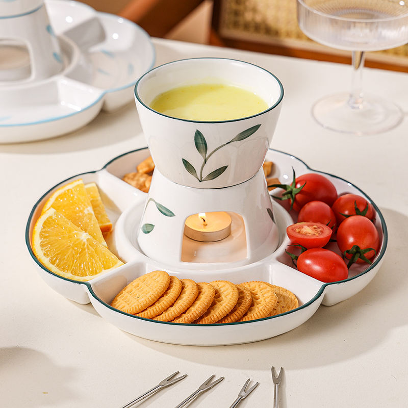Juego de Fondue de Queso Portátil de Porcelana Blanca Pura con Base de Plato y Asa de Plástico, Apto para Lavavajillas y Microondas, para Helados Caseros Hagen-Dazs
