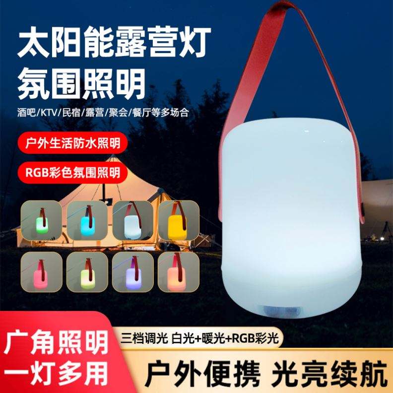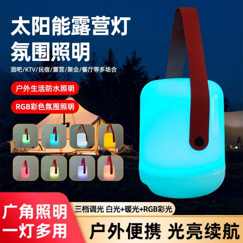 Lámparas Solares LED RGB Portátiles, Lámparas de Senderismo de Luz Blanca Cálida con Clasificación IP65, Cuerpo de Plástico para Acampar al Aire Libre